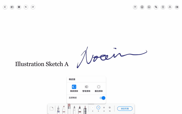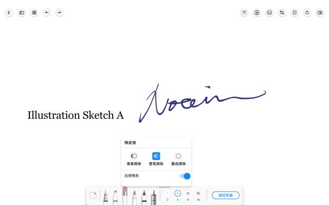 When you use the eraser tool to touch a point on an ink stroke, the entire stroke connected to that point will be erased. This option is suitable for quickly erasing content.