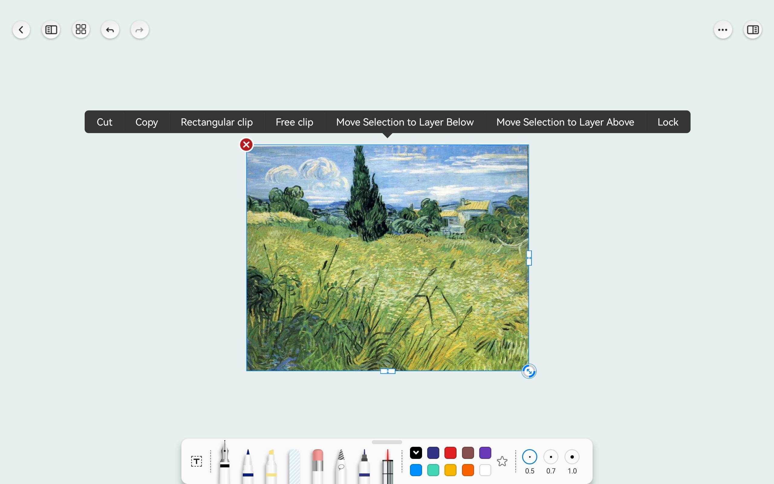 - In the image editing state, you can perform actions such as move, copy, crop, rectangular crop, freeform crop, and locking.